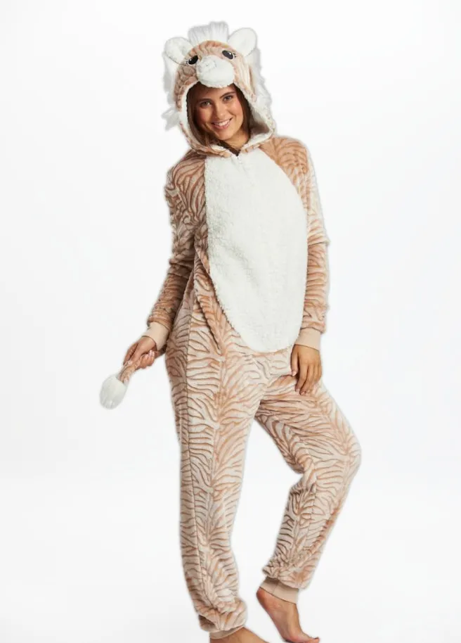 Fijne Tijger onesie om lekker in te kruipen op de koude winterdagen. Deze Tijger onesie is gemaakt van een goede kwaliteit zachte stof met print. Op de capuchon van dit model zijn de oren en het gezichtje te vinden. Het staartje aan de achterkant van deze onesie maakt de tijgerlook compleet. De boorden bij de mouwen en pijpen zijn afgewerkt met een elastische band waardoor deze altijd goed vallen. De onesie sluit met een rits aan de voorkant. Dit is de perfecte outfit voor een dagje hangen op de bank, maar ook dansen tot in de late uurtjes op de vetste parties behoort tot de mogelijkheden. Productinformatie Onesie Tijger: Materiaal: Deze tijger onesie is gemaakt van een zachte fleecestof (100% polyester) Maatrichtlijn obv lichaamslengte Maat Lichaamslengte Breedte XS 150 t/m 160 cm 34 S 155 t/m 165 cm 36 M 160 t/m 170 cm 38 L 165 t/m 175 cm 40 XL 168 t/m 178 cm 42 XXL 173 t/m 183 cm 44 Met het hele gezin in dezelfde onesie? > Bekijk hier de Tijger Onesie voor kinderen en tieners.